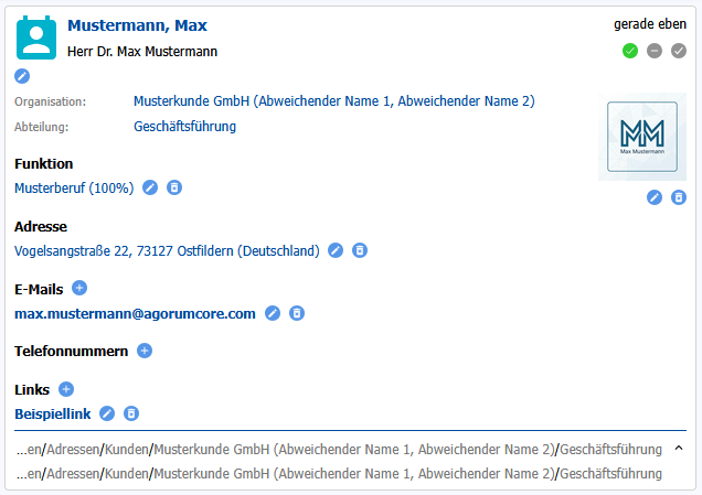 Die nachfolgend aufgeführten Icons begegnen Ihnen in agorum core, wenn Sie mit Adressen arbeiten: