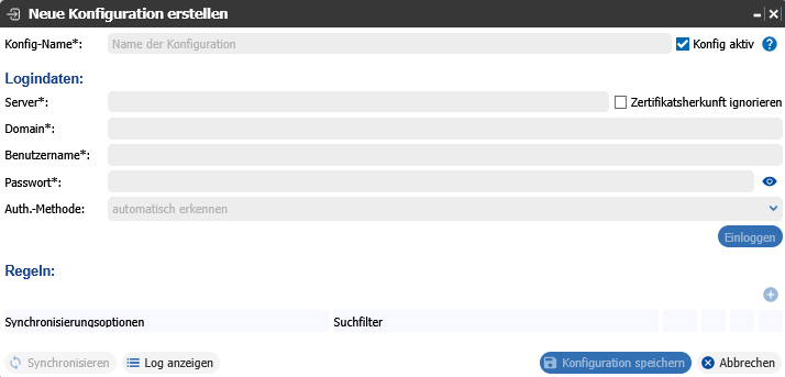 | Konfig-Name | Name der Konfiguration. Erlaubt sind alphanumerische Zeichen und Unterstrich (_). Beispiel: AD_Hauptstandort |
