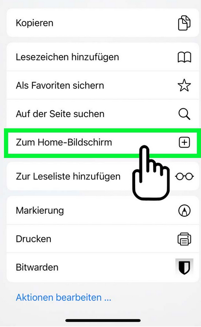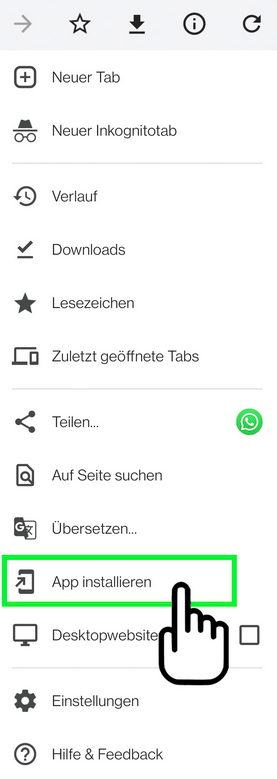 - Wählen Sie im Menü die Option Zum Startbildschirm zufügen oder App installieren.