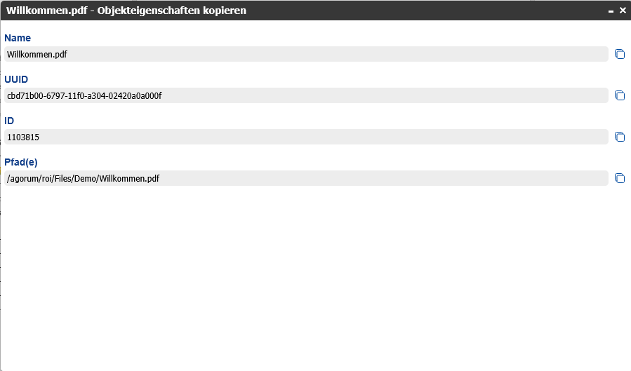 Für manche Tests benötigen Sie Metadaten, damit Sie Tests vollständig ausführen können. Die Metadaten eines Objekts können Sie über das Kontextmenü auslesen.