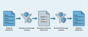 - Personenbezogene Informationen werden durch Platzhalter ersetzt (Pseudonymisierung)